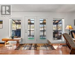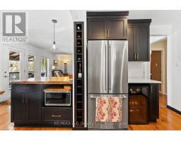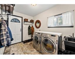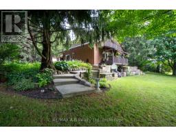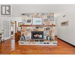 Country Charm! Situated amongst mature trees on just over an acre of beautifully landscaped land, this well-maintained rural property offers the peace of country living with convenient access to St. Marys, Stratford, London, and Woodstock. This inviting 3-bedroom, 2-bathroom home with attached garage showcases warm, timeless character throughout. The updated kitchen features stone countertops, a farmhouse apron sink, custom pantry and wine rack, beverage fridge, with modern country finishes including pine flooring and live-edge wood accents. The spacious living room is anchored by oak flooring and a stunning fieldstone wood-burning fireplace, flowing seamlessly to the kitchen, all overlooking an expansive covered porch with sweeping countryside views. A separate dining room opens to a private garden patio retreat complete with hot tub - perfect for relaxing or entertaining. The main-floor laundry/mudroom offers practical everyday convenience with direct access to the garage.The finished lower level adds valuable living space with a recreation room, workshop area, and walkout to the backyard. Outdoors, the rear two-tiered deck captures panoramic rural vistas, while the mature trees and landscaping create exceptional privacy. Ideally located near Wildwood Conservation Area, Happy Hills Campground, and scenic country amenities. A rare opportunity to enjoy tranquil country living without sacrificing proximity to town conveniences. (id:47351)