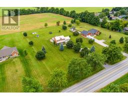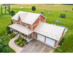 Escape to country living in this elegant 2-storey brick home, offering 4 spacious bedrooms and 2.5 baths. The main floor features a large kitchen with a centre island, perfect for family gatherings and a laundry room. An office on the main floor provides an ideal space for working from home. Upstairs, the primary bedroom boasts a luxurious 4-piece ensuite, complemented by three additional bedrooms and another full bathroom. The finished basement is a recreational haven with a large rec room, home gym as well as a utility room, cold cellar, and multiple storage areas. Set on a beautiful 2.04 acre lot, this property includes a large paved driveway and an above-ground pool for summer fun. Property also boasts an insulated and heated garage. Enjoy the peace and tranquility of country life with all the comforts of a modern home. (id:47351)