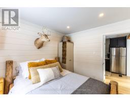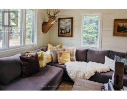 Charming Renovated Bunga-Loft for Lease in Huntsville. Nestled on a private, level 1.3-acre lot surrounded by majestic pine trees, sits this beautifully renovated Bunga-Loft. Inside, you'll find 2 spacious bedrooms and 1 stylish bathroom, all within a bright open-concept layout filled with natural light from large windows framing the scenic views. The home features luxury vinyl flooring throughout, a custom kitchen with quartz countertops and high-end appliances, and a modern bathroom complete with a glass-enclosed shower and marble-topped vanity. Outside, enjoy the peace and privacy of mature forest surroundings, a detached oversized double garage, and ample level land - ideal for outdoor living. Located just minutes from downtown Huntsville, the hospital, and local schools. Best of all, you'll be just moments away from Arrowhead Provincial Park, one of Huntsville's most beloved natural attractions. This property is available furnished or unfurnished - perfect for those seeking a stylish and serene place to call home for a while. (id:47351)
