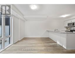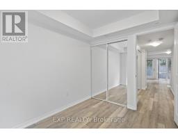 Move-In Ready!! Nestled in the ultra-desirable Islington-City Centre West neighbourhood, this bright and efficient two-bedroom, one-bath stacked townhome offers modern urban living with unmatched convenience. Just steps from Islington Subway Station, you're seamlessly connected to the rest of Toronto, Downtown, and the airport. Spread over approximately 700sqft + 120+sqft terrace, the layout is thoughtfully designed to maximize space and functionality. The main level features an inviting kitchen with quartz Caesarstone countertops, undermount sink, and backsplash, flowing into a versatile living-dining area thats perfect for working, relaxing or entertaining - even space for a work from home den area. Wall-to-ceiling windows bathe the space in natural light, accentuating the sleek laminate flooring.Step outside onto your two private terraces ideal for morning coffee, evening BBQs, or greenery. Inside, enjoy the ease of ensuite laundry and access to well-maintained building amenities like visitor parking, bike storage, and a beautifully landscaped complex. Located near quality schools, lush parks, and scenic bike trails this home combines comfort, creativity, and prime connectivity. Underground Parking Available $100/mo. (id:47351)