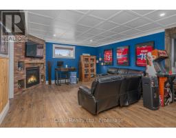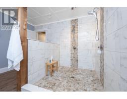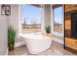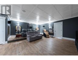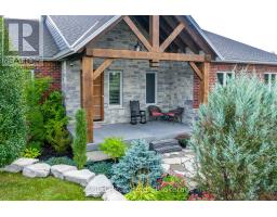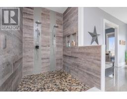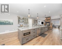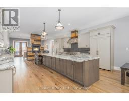 This extraordinary 5-bedroom, 5-bathroom custom-built bungalow offers over 5,000 sq ft of beautifully finished living space on 9 peaceful, tree-lined acres in sought-after Erin. A perfect blend of luxury and functionality, the home features hardwood flooring throughout the main level and a chefs dream kitchen with a large quartz island, top-of-the-line appliances, and a two-way fireplace connecting to the inviting living room. A walkout from the living room leads to a covered deck overlooking the stunning property ideal for entertaining or quiet evenings in nature. The primary suite is a true retreat, featuring a spa-inspired ensuite with a spacious 6x6 open-framed shower, freestanding tub warmed by a gas fireplace, and elegant finishes. Two additional main floor bedrooms each offer 4-piece ensuites and double closets, providing comfort and privacy for family or guests. The fully finished walk-out basement boasts a spacious layout with heated floors, a second kitchen, games area, cozy great room with gas fireplace, dedicated theatre room with Dolby Atmos 9.1 surround sound, one bedroom currently used as a home gym, and a second bedroom with a semi-ensuite featuring another 6x6 open-framed shower. Step outside to a private patio with gazebo, hot tub and built-in fire nook perfect for relaxation. Additional highlights include a heated garage with epoxy flooring, whole-home 22kW automatic generator, reverse osmosis water treatment system, and scenic pond separating two 4+ acre parcels each with its own driveway and natural gas hookup. Previously approved for a second building (with septic and well), this property offers luxury, flexibility, potential future development, and country charm in one unmatched package. (id:47351)