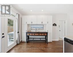 Beautifully finished True Ranch bungalow | Freehold semi-detached | No condo fees. Welcome to this beautifully finished True Ranch bungalow in the heart of Wasaga Beach, offering easy one-level living in a freehold semi-detached home with no condo fees. This 2-bedroom, 2-bathroom home features an attached garage with inside entry to a thoughtfully designed laundry room complete with a custom live-edge wood countertop, laundry sink, and extra cabinetry. Freshly painted in 2025, the home offers 9' ceilings, hardwood flooring, pot lights, custom blinds, and upgraded hardware on all doors and cabinets throughout. The spacious kitchen features ample cabinetry, a quartz breakfast bar, tiled backsplash, and stainless steel appliances, great for both everyday living and entertaining.The bright living area is filled with natural light and invites you to cozy up to the shiplapped gas fireplace on winter nights. French doors lead to a private, fully fenced backyard with a concrete patio, retractable awning for shade, and storage shed.The primary suite offers 11' vaulted ceilings, a walk-in closet, and a private ensuite with a glass shower. The guest bedroom is conveniently located near a full 4-piece bathroom with tub/shower combo, large vanity, and quartz countertops. Additional highlights include on-demand hot water, parking for two vehicles, and a quiet, well-kept neighbourhood. Just a short walk to the beach, restaurants, shopping, and the local community centre with an indoor walking track.An ideal option for first-time buyers, retirees or empty nesters, or a low-maintenance weekend getaway in Wasaga Beach. (id:47351)