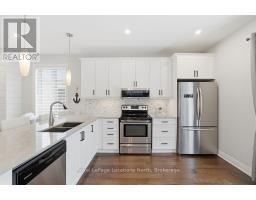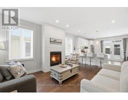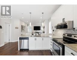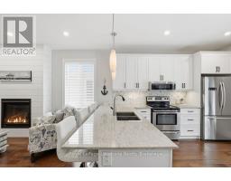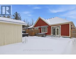 Beautifully finished True Ranch bungalow | Freehold semi-detached | No condo fees. Welcome to this beautifully finished True Ranch bungalow in the heart of Wasaga Beach, offering easy one-level living in a freehold semi-detached home with no condo fees. This 2-bedroom, 2-bathroom home features an attached garage with inside entry to a thoughtfully designed laundry room complete with a custom live-edge wood countertop, laundry sink, and extra cabinetry. Freshly painted in 2025, the home offers 9' ceilings, hardwood flooring, pot lights, custom blinds, and upgraded hardware on all doors and cabinets throughout. The spacious kitchen features ample cabinetry, a quartz breakfast bar, tiled backsplash, and stainless steel appliances, great for both everyday living and entertaining.The bright living area is filled with natural light and invites you to cozy up to the shiplapped gas fireplace on winter nights. French doors lead to a private, fully fenced backyard with a concrete patio, retractable awning for shade, and storage shed.The primary suite offers 11' vaulted ceilings, a walk-in closet, and a private ensuite with a glass shower. The guest bedroom is conveniently located near a full 4-piece bathroom with tub/shower combo, large vanity, and quartz countertops. Additional highlights include on-demand hot water, parking for two vehicles, and a quiet, well-kept neighbourhood. Just a short walk to the beach, restaurants, shopping, and the local community centre with an indoor walking track.An ideal option for first-time buyers, retirees or empty nesters, or a low-maintenance weekend getaway in Wasaga Beach. (id:47351)