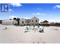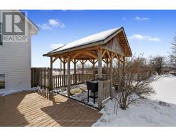 Perched atop a scenic hill just outside Cobourg, this family home captures breathtaking panoramic views of the rolling hills of Northumberland County and Lake Ontario. Set close to town, with the added privacy of out-of-town living, this home offers the perfect balance of convenience and peaceful country living. Overflowing with curb appeal, the property makes a striking first impression. A spacious front deck with a charming wooded pergola offers an incredible vantage point for taking in the sweeping views. Inside, bright natural light fills every room, enhancing the open-concept layout with soaring ceilings and a sun-soaked atmosphere, highlighted by a dramatic second-storey window. The well-appointed living and dining areas feature a carpet-free layout, ideal for both everyday living and entertaining. The kitchen stands out as a true centrepiece, spacious and thoughtfully designed with a large island offering prep space and storage, contemporary pendant lighting, matching appliances, ample counter and cabinet space, and a convenient built-in desk area. Just off the kitchen, a versatile mudroom or office includes walkouts to the backyard. Upstairs, three well-appointed bedrooms are complemented by a full bathroom with a double vanity and an offset subway-tile wall detail. The lower levels provide exceptional additional living space, including a bright and spacious family room with walkout, play nook, and office or games area. A further level offers a generous bedroom, full bathroom, media room, and laundry. Outdoors, the sprawling, tree-lined property is designed for enjoyment, featuring a large deck with both open and covered areas, a fire pit, and ample green space, all perfectly positioned to take in the stunning surroundings. A double-car garage, built in 2020, adds modern convenience and functionality. Easy access to amenities along Highway 2 completes this exceptional offering - privacy, space, and incredible views, all just minutes from town. (id:47351)