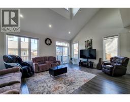 Gorgeous bungaloft offering 3+2 bedrooms, 4 full bathrooms, and a fully finished basement. Built in 2017. Recent upgrades (2024) include a heat pump, water softener, water heater, and new attic insulation—ensuring low utility costs with no rentals; everything is owned. The home features a beautiful interlocking stone driveway and a welcoming foyer with ceramic flooring and a walk-in closet, leading into an open-concept main floor. The eat-in kitchen offers ample cabinetry, black stainless steel appliances, granite countertops and backsplash, soft-close cabinets, and a large island with a breakfast bar. The great room showcases vaulted ceilings and a sliding patio door that opens to the backyard. The main floor primary bedroom includes a spacious walk-in closet and a luxurious 5-piece ensuite with double vanity and glass shower. An additional main floor bedroom also features a walk-in closet, along with a 4-piece bathroom on the main level. An oak staircase leads to the second-floor loft overlooking the great room, complete with another bedroom with walk-in closet and a 4-piece bathroom. The double car garage provides inside entry to a mudroom and separate laundry room. The fully finished basement includes two additional bedrooms with luxury vinyl flooring, a 4-piece bathroom with ensuite privilege, and a spacious recreation room—perfect for family living. Enjoy the extensively landscaped backyard, featuring a two-tiered deck, interlock patio, outdoor gas fireplace, and gas BBQ hookup—ideal for entertaining. (id:47351)