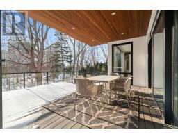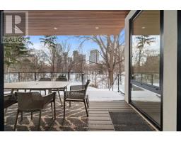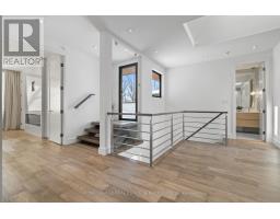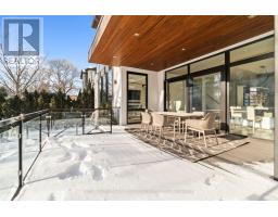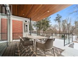 Stunning modern-contemporary custom residence in the heart of The Kingsway, offering an exceptional combination of design, scale, and location. Situated on a rare 54 x 199 ft ravine lot backing onto Tom Riley Park, this home provides a private and tranquil setting surrounded by mature greenery, while remaining just steps from transit, top-rated schools, and the vibrant shops and restaurants along Bloor Street. Spanning approximately 5,200 sqft of total living space, this 4+2 bedroom, 5 bathroom home showcases innovative architecture, premium finishes, and a highly functional layout across all levels. The main floor is anchored by a contemporary chefs kitchen with Caesarstone countertops and backsplash, Jenn-Air, Bosch, and Wolf appliances, a built-in coffee station, and custom wine display, seamlessly flowing into open concept living and dining spaces. Expansive glass doors connect to a covered 340 sqft patio with fireplace, perfect for year round entertaining. Upstairs, a skylit hallway leads to generously sized bedrooms, spa-like baths, and a 326 sqft upper terrace with ravine views, while the lower level offers a dedicated wine cellar, recreation room with fireplace, and state-of-the-art home theatre with 98" 4K screen and custom sound system. Additional highlights include multiple gas fireplaces (indoor and outdoor), heated basement floors, engineered hardwood throughout, illuminated stair features, dual laundry rooms, smart-home automation, and a private backyard oasis designed for relaxation. Rarely does a property of this calibre become available in such a prestigious and family-friendly neighbourhood. (id:47351)