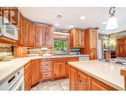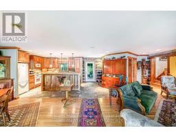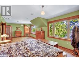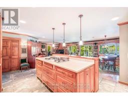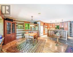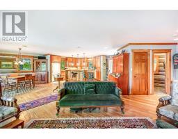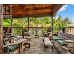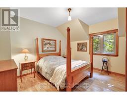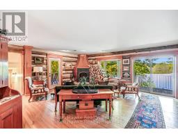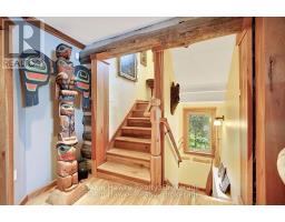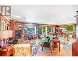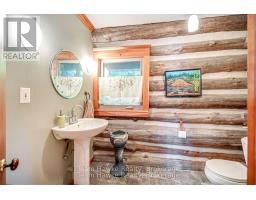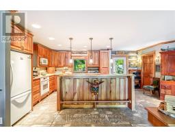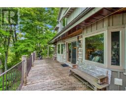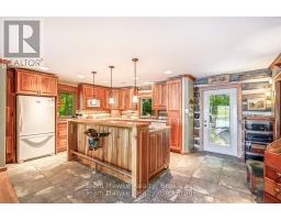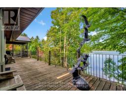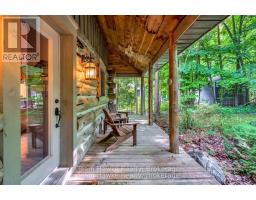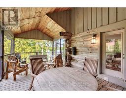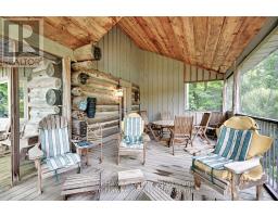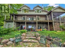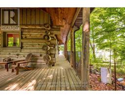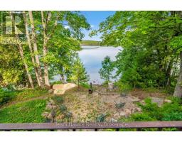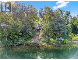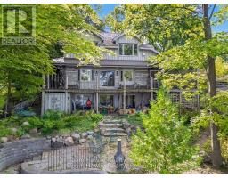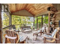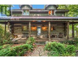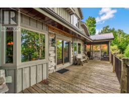 One of only eleven waterfront properties on Sumac Lane, this stunning four-season log home, built in 2005, offers just under 74 feet of frontage on Little Lake. Tucked away on a privately maintained road, the home screams rustic charm, creating an ideal year-round residence or weekend retreat. Inside, the heart of the home is the large chefs kitchen, complete with a generous island and open to the main floor living and dining areas, perfect for entertaining family and friends. Beautiful cherry floors and cupboards complement the natural log construction, while three copper-surround fireplaces (one on each level, including in the primary bedroom) add warmth and character throughout. The spacious primary suite spans the full length of the home along the water side, offering breathtaking views. The walk-out basement features a large recreation room, sauna, and easy access to the outdoors. Enjoy the wrap-around porch, expansive back deck overlooking the water, and a fully screened-in sunroom off the main living room. Only 90 minutes from the GTA, this property offers a rare combination of privacy, comfort, and peaceful waterfront living that could either be your home away from home, or your full time residence. (id:47351)