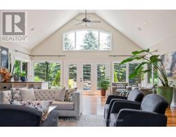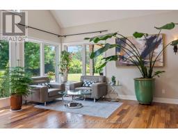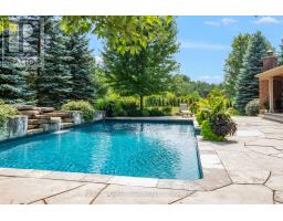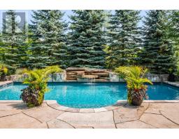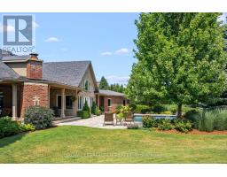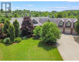 Welcome to your own private paradise just outside of Erin - where luxury, lifestyle, and location converge. This exquisite executive bungalow offers approximately 8,000 sq ft of total finished living space, blending comfort, elegance, and thoughtful design, both inside and out. Set on a beautifully landscaped lot just over an acre, the property is fully fenced and equipped with an in-ground sprinkler system. The backyard is a true oasis for relaxation and entertainment. Dive into the saltwater pool with a cascading waterfall, unwind in the covered hot tub, or host gatherings under the covered porch featuring cedar ceilings, outdoor speakers, a TV, and a wood-burning fireplace for cozy evenings. This outdoor space feels like your private resort, perfect for summer parties or tranquil morning coffees amid lush gardens. Inside, the main floor spans 3,500 sqft with soaring cathedral ceilings in the stunning great room. Durable bamboo flooring and a double- sided fireplace enhance the home's heart, while the eat-in chef-inspired kitchen, updated in 2022, boasts high-end appliances and ample prep space, ideal for daily meals or entertaining. Three generous bedrooms on the main level each offer their own ensuite bathrooms, including the luxurious primary suite with heated floors in both the ensuite and shoe room, a soaker tub beside a fireplace feature, and a walkout to the hot tub. A versatile 1,000 sqft loft above the oversized 3-car garage serves as guest space or a home studio, complete with a three piece bathroom with heated floors. The finished lower level adds approximately 3,500 sqft of living space, featuring heated floors, two bedrooms, two full baths, and a full kitchen. With smart technology and premium finishes, this home is not just a residence; it's a lifestyle. Close to schools, shopping, dining, equestrian centres, golf, and the nearby Elora Cataract Trail, it offers everything you need for a luxurious life. (id:47351)
