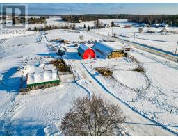 Turnkey 164-acre agricultural/commercial farm operation located at 979 Stewart Road, Cache Bay, Ontario. Property consists of 100 acres tile drained, 46 acres of bush, and multiple electric-fenced pastures with 6 paddocks, supporting an established cattle and horse operation. Productive land with two cuts of hay annually yielding approximately 600 round bales. Improved with a 2016-built bungalow offering over 4,500 sq ft of finished living space, 5+2 bedrooms, 3 bathrooms, walkout basement with rough-in for a second kitchen, and in-floor heating in the basement and double car garage, suitable for owner-operator residence, staff housing, or multi-generational use. Farm infrastructure includes a barn, newer Quonset building, and two drilled wells, providing strong operational capacity for livestock, hay production, and mixed agricultural use. (id:47351)