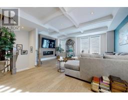 This stunning builders model townhome is a spacious corner unit with a 2-car garage, offering a stylish and functional design with custom upgrades throughout. Located just steps from parks, shopping, the GO Station, Vaughans hospital, a community centre, and a library, this home provides both convenience and modern elegance. Step inside to discover a bright, open-concept family room, with wall-to-wall windows and featuring a custom fireplace accent wall. The elegant dining area is enhanced with coffered ceilings, while the gourmet kitchen boasts quartz countertops, stainless steel appliances, a chic backsplash, a breakfast bar, an eat-in area, and a walkout to a private balcony. With three bedrooms and four upgraded bathrooms, this home is designed for comfort and style. The formal living room offers versatility and can easily function as a guest suite on the ground level or additional entertainment space. Hardwood floors span three levels, complemented by 9-ft ceilings on the main floor, crown mouldings, pot lights, smooth ceilings, and designer lighting. Thoughtful custom-built closet organizers, window coverings, and stylish built-ins add both elegance and practicality. The fully finished basement extends the living space with an open-concept recreation room and a spa-like 3-piece bathroom. (id:47351)