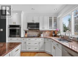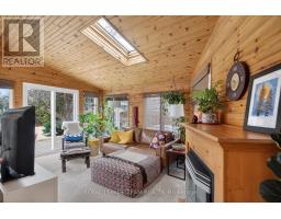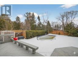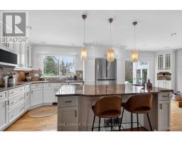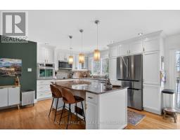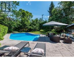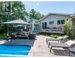 Classic charm meets modern luxury in this beautifully updated open-concept bungalow with a private backyard oasis. From the moment you step inside, oak hardwood floors, custom wainscoting, and an inviting living room with a traditional wood-burning fireplace set the tone. The chef-inspired kitchen is the heart of the home, featuring custom cabinetry, granite countertops, high-end stainless steel appliances, and an expansive island with prep sink and bar fridge. Elegant pendant lighting, specialized task lighting, and a dedicated coffee bar add both style and function. The space flows seamlessly into a bright 4-season sunroom with its own gas fireplace-perfect for year-round enjoyment. Premium window treatments and LED pot lights complete the space.The primary bedroom offers a peaceful retreat with a striking grasscloth accent wall and soft pot lighting. Two additional bedrooms are served by a spectacular spa-like main bathroom featuring heated soapstone floors, a walk-in shower with built-in bench, deep soaker tub, double sinks, and Corian countertops.The fully finished basement provides exceptional additional living space with plush newer carpeting and upgraded underpad. Highlights include a family/media room with projector and screen, dedicated music room, home gym area, fourth bedroom, and nearby three-piece bath. Ample storage includes a cedar closet, pantry, oversized laundry room, and spacious utility room.Outside, the landscaped backyard is a true retreat with two-tier decking, a heated in-ground saltwater pool with stamped concrete surround, relaxing hot tub, and BBQ gazebo-perfect for summer entertaining. Ideally located steps from the park and to everyday amenities, this exceptional home offers the perfect balance of comfort, style, and outdoor living. (id:47351)