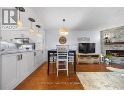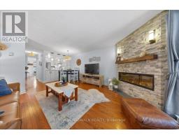 Low-maintenance living in the desirable community of Convent Glen North. A covered front entrance welcomes you into a tiled foyer with ample closet space and a convenient powder room (2019). Hardwood flooring runs throughout the main level, complemented by large windows and sliding patio doors that fill the space with natural light.The updated kitchen (2024) is designed for both function and appeal, featuring white shaker soft-close cabinetry, a calming horizontal blue backsplash, deep quartz countertops, and an extended breakfast bar. The living area offers a cozy focal point with a stone electric fireplace (2025) and peaceful views of the rear green space with no direct rear neighbours.PVC fencing and mature trees create a private, tranquil outdoor setting. Down the two-tone staircase, the lower level remains bright with large egress windows at both the front and back. The primary bedroom features a full-width, wall-to-wall closet, while the updated 4-piece main bathroom (2019) includes a large vanity and tiled tub surround with soaker tub.Laundry is conveniently located on the lower level, along with additional storage. Ideally situated close to walking paths, schools, OC Transpo, grocery stores, and everyday amenities. Pride of ownership throughout in a family-friendly neighbourhood. (id:47351)