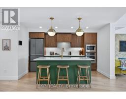 Nestled on the west side of the city in lovely Riverbend is this exquisite 3-bed, 2.5 bath condo in a London's premier net zero community. Here, they have seamlessly blended modern luxury with sustainable living in this cutting edge development. Perfectly situated within walking distance of some of the best nature trails along the river in the entire area, this home offers a serene escape while remaining close to urban conveniences, creating a nice balance of accessibility and modern flare. Step inside to find expansive windows that flood the space with loads of natural light, illuminating the San Marino Canyon hardwood floors that flow effortlessly through the main living areas, bedrooms and hallways. An electric fireplace sits in the living area, wrapped in hardwood, herringbone style It is definitely the focal point of the area, and it should be. The gourmet kitchen is an absolute masterpiece with gorgeous countertops, specialized cabinets and a beautiful Moen align brushed gold faucet that adds a touch of elegance, flanked by Panasonic energy efficient appliances. A large island doubles as a breakfast bar and just off the kitchen is where the dedicated home office space is perfect for those who might still be working from home. Heading upstairs, the primary bedroom is like a private retreat with a spacious walk-in closet and a luxurious en suite featuring all the extras, with great views via loads of windows. Sustainability is definitely at the core of this home, with a smart home system, included 1.5 GBPS fibre Internet, and construction using eco-friendly, natural materials. A unique parking tower valued at $30K, includes electric vehicle charging, complemented by a Tesla car share option. This unit also includes two storage units, permanently tied to the unit offer ample space. Blackout blinds in the bedrooms and 3% screen blinds elsewhere enhance your comfort and loaded with amenities make this an easy place to call home. (id:47351)