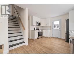 Recently renovated from the studs, this move in ready three bedroom, one bathroom unit offers modern comfort and thoughtful design. The main floor features an open concept layout with clear sightlines between the spacious kitchen and bright living area, highlighted by a large front window that fills the space with natural light. The kitchen is equipped with stainless steel appliances, soft close drawers, and a convenient pantry, with access to a small deck and backyard through the rear entrance. Upstairs, you'll find three well proportioned bedrooms, a stylish four piece bathroom, and the convenience of in-suite laundry. Additional storage space is available in the accessible basement. This unit also includes parking for two to three vehicles, providing practical benefits to complement its fresh interior. Ready for immediate possession. (id:47351)