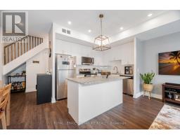 Modern 2-Bedroom Condo Townhouse with Private Rooftop Terrace in Prime Vaughan Location! Welcome to Oggi Boutique Towns, where contemporary style meets exceptional convenience! This bright and beautifully maintained 2-bedroom, 3-bathroom condo townhouse offers the perfect blend of comfort and modern living across three thoughtfully designed levels. One parking, a locker and underground visitors parking. Step inside to a luxurious entrance and an open-concept main floor featuring 10-foot ceilings,elegant engineered hardwood flooring, and pot lights throughout, creating an airy and sophisticated feel. The spacious kitchen is a chef's delight with quartz countertops, stainless steel appliances, ample storage, and a centre island with breakfast bar-ideal for casual dining or entertaining. The cozy living and dining areas flow seamlessly, with access to a private balcony and a powder room for guests. Upstairs, you'll find two generously sized bedrooms. The primary suite includes a walk-in closet and a spa-inspired ensuite bath, offering a private sanctuary to unwind. The second bedroom-currently set up as a guest room-is perfect for a home office, nursery, or guest suite. A second full bathroom completes this level for added convenience. Discover a rare find in the city - your very own private rooftop terrace!Located on the third level, this exclusive outdoor retreat is perfect for unwinding, summer BBQs, or entertaining guests under the stars. A true gem that's hard to come by! Enjoy the ease of one parking spot and one locker, along with unbeatable access to Highways400/407/427, Vaughan Metropolitan Centre subway, TTC, shopping, restaurants, libraries, and parks-all just steps from your door. This is more than just a home-it's a lifestyle. Don't miss the chance to call this stunning space your own! (id:47351)