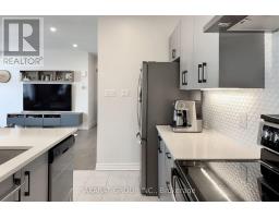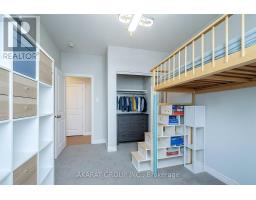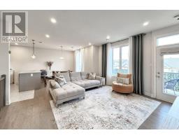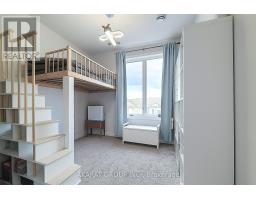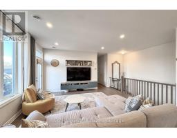 2-bedroom, 2-bath penthouse condo offers over $50K in premium upgrades and a bright, modern living experience. Featuring 9 ft ceilings, 5.5 ft tall east-facing windows, and premium 5" engineered oak hardwood floors, the home is filled with natural light and high-end finishes. The upgraded kitchen includes quartz countertops, an extended island with breakfast bar, designer wall tiles, under-cabinet lighting, and an open hood fan. Both bedrooms feature plush dense broadloom with thick under padding, and the primary ensuite showcases oversized tiles and sleek modern fixtures. Additional highlights include extra dimmable pot lights, a larger-than-standard staircase, a spacious 6' x 15' balcony, and ample storage including a large linen closet and dedicated mechanical/storage room. With no neighbors above, this penthouse combines privacy, style, and comfort in an exceptional open-concept layout. (id:47351)