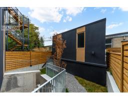 Discover modern comfort and contemporary design in this brand-new, detached two-level, 1 bedroom garden suite where style meets practicality. Featuring thermal heating throughout, heated concrete floors on the main level, and heated bathroom floors for year-round comfort, this home blends luxury with efficiency. The skylight fills the space with natural light, complementing the sleek galley kitchen with built-in premium appliances and striking black accents. A spa-inspired bathroom with a glass walk-in shower enhances the modern aesthetic, while all blinds are included for a move-in-ready experience. Enjoy the convenience of a separate laundry on the ground floor and a seamless walkout to the rear yard. Heated walkways ensure easy winters, and thoughtful extras like a dedicated bicycle spot to add to everyday ease. Located close to transit, shops, cafés, and restaurants, this suite offers flexible lease terms and includes one year of free heat, making it perfect for professionals or creatives seeking comfort and convenience in a prime location. (id:47351)