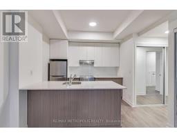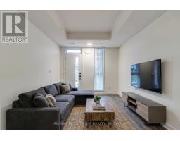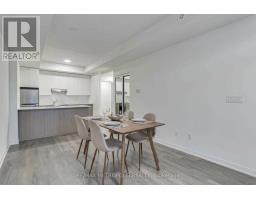 Located in Daniels' desirable Keelesdale community, this well-maintained 1-bedroom, 1-bathroom main-level condo townhouse features a private front entry with tumbled stone terrace, 9-ft ceilings, and a bright open-concept living and dining area with laminate flooring. The modern kitchen includes stainless steel appliances, quartz countertops, tiled backsplash, and centre island. The spacious bedroom offers a mirrored closet and additional storage. Includes ensuite laundry, window coverings, 1 underground parking space, and a locker. Residents enjoy access to a 2-storey amenity building with fitness centre, party room, co-working space, BBQ area, dog wash station, and gardening plots. Conveniently located minutes to the Eglinton LRT, public transit, parks, shopping, and Highways 401 & 400. Ideal for a single professional or couple. (id:47351)