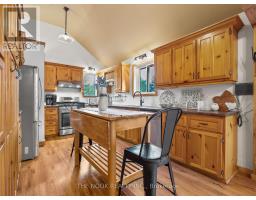 Exuding cottage country charm, this home perfectly captures the essence of relaxed, small-town living just steps from Rice Lake and minutes from the Ganaraska Forest. Surrounded by scenic landscapes and friendly neighbours, it offers year-round adventure with endless opportunities for snowmobiling, ATVing, hiking, fishing, and ice fishing possibilities directly from the property to trails and lake! The property blends rustic character with thoughtful updates, including a roof replaced by Oak Hill Roofing in 2021, and a spacious backyard oasis featuring a hot tub and large deck ideal for summer barbecues or evening stargazing. Inside, the upper level welcomes you with warmth and character. The living room features a vaulted ceiling, rich wood accents, and a cozy electric fireplace, flowing naturally into a charming dining area framed by exposed beams. The kitchen combines style and functionality with abundant solid wood cabinetry, stainless steel appliances, and a convenient island-perfect for meal prep or casual dining. The primary bedroom offers a serene escape, while the second bedroom provides flexibility for guests or a home office. A fully renovated 4-piece bathroom completes the level with modern finishes and natural wood accents that tie the home's inviting aesthetic together. The lower level extends the home's comfort and versatility with a bright walkout foyer and a spacious rec room that's ideal for family gatherings or relaxing by the fire. A bonus bedroom adds space for guests or hobbies, while the laundry and utility rooms keep daily life organized. Ample storage throughout ensures both practicality and ease, making this home the perfect blend of country charm, comfort, and functionality-tailor-made for those who value peaceful living with adventure at their doorstep. (id:47351)
