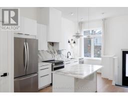 Soaring on Sorauren! This extra-spacious end-row townhouse is truly a cut above. Renovated right to the studs, it delivers next-level living with dramatic 10.5-foot ceilings on the main level, and picture windows throughout that flood the home with natural light. Designed for both everyday living and effortless entertaining, the main floor features a large kitchen with an eat-in island, a dedicated dining area that comfortably seats eight, and a generous living space anchored by a decorative fireplace (the perfect spot for an oversized sectional!). A convenient powder room completes this level. Upstairs, you'll find three generously sized bedrooms, all with ample closet space, plus a beautifully appointed bathroom featuring a double vanity and walk-in shower. The walk-out backyard provides direct access to laneway parking, and the lower level includes private laundry. Enjoy the best of urban living in a prime Roncy locale - steps to restaurants, shops, grocery stores, the Dundas and Queen streetcars, Bloor UP Express, and the green spaces of Sorauren and High Parks. Bright, spacious, and thoughtfully designed, this ceiling-raising family home is a must-see. (id:47351)