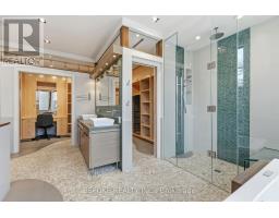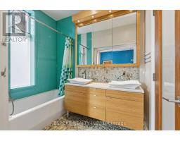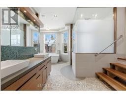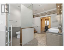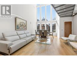 Some homes unfold as you move through them--and the furnished main loft at 90 Madison Ave is one of them. More than 3,200sqft of striking architectural space unfolds across three levels, linked by custom glass-and-metal catwalks and lit by a soaring west-facing wall of glass. With 27-ft ceilings and warm, heated Brazilian wide-plank hardwood floors, this is an Annex rental that lives large. On the main level: a generous open living/dining area walks out to a quiet west-facing terrace over a private backyard. The sleek walnut-and-quartz kitchen is built to perform, with a 5-burner gas range, oven, fridge-freezer, dishwasher, microwave, double sink and a breakfast bar. There's also a discreet powder room, mudroom-style storage, and an enclosed office/media room that could easily flex as an additional bedroom. A private elevator connects all three levels. Upstairs, a built-in family lounge separates two bedroom suites. The east-facing primary offers a covered balcony, a floor-to-ceiling custom walk-in closet w/ vanity, and an indulgent 8-piece ensuite: heated pebble-tile floors, jacuzzi tub, glassed-in shower, double vanity, toilet and bidet. The second bedroom has a large closet and its own 5-piece ensuite.The top floor adds two more bedrooms-one with vaulted ceilings, covered balcony and double closet; the other with vaulted ceilings, two skylights, two double closets, and interior windows overlooking the living space. A full family bathroom with waterfall tub/shower, double sinks and great storage serves both. Extras? Every bathroom has heated floors. There's second-floor laundry with built-ins, security cameras front and back, four-car parking (two side-by-side surface spots + two tandem under the carport), and yes-utilities and furnishings are included. Set on a premium Annex street, you're walking distance to Dupont, Spadina and St George stations, Bloor St, Yorkville, and some of the city's top schools: UTS, ICS, Mabin, Huron, RDS, Royal St. George's and U of T. (id:47351)