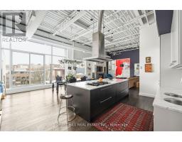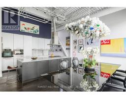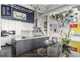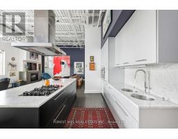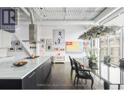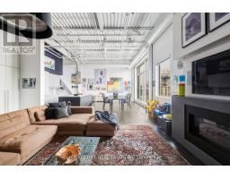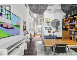 Come home to one of the city's most stunning architectural masterpieces. Set within an intimate boutique building of just seven exclusive residences, this design-driven loft offers discretion and privacy just steps from Toronto's most iconic neighborhoods, including The Annex, Yorkville, and Casa Loma.Positioned on the top floor and defined by dramatic 15-foot ceilings, this showpiece lives more like a private home than a condominium. The extraordinary space is anchored by a sleek gas fireplace and wrapped in floor-to-ceiling windows that flood the interior with natural light. Clean lines, voluminous proportions, and an effortless open-concept layout create an atmosphere that is both refined and inviting.The Schiffini chef's kitchen is contemporary and functional, featuring an oversized island with extensive integrated storage and a full suite of top-of-the-line Miele appliances. Designed for both elevated entertaining and everyday living, it seamlessly anchors the main living area.Two generously sized bedrooms each feature a private ensuite, providing rare symmetry and privacy. The primary suite is a true retreat, complete with a large walk-in closet and a spa-caliber bath featuring a deep soaker tub, steam shower, and floor-to-ceiling tile detailing. A beautifully appointed powder room adds convenience for guests.Outdoor living includes a private balcony plus two Juliet balconies, enhancing the indoor-outdoor flow and reinforcing the loft's airy, architectural presence. Professionally curated throughout, the residence perfectly blends authentic industrial character with elevated modern finishes. Two parking spaces and a large private locker complete this exceptional offering. For those with refined taste seeking a truly unique space to live and entertain, this property is a dream come true. (id:47351)