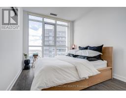 Bright penthouse unit with 9 ft ceilings and a smart, open-concept layout. Floor-to-ceiling windows bring in tons of natural light and open to a Juliette balcony for fresh air and city views. Modern kitchen with integrated appliances and quartz countertops, comfortable bedroom, and a sleek bathroom. Includes a prime parking spot with a column on one side and no adjacent vehicle on the other, offering extra space and easy access. Well-managed building with great amenities, steps to TTC, parks, shopping, and quick access to the 401. Effortless, low-maintenance living in a prime location. (id:47351)