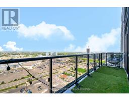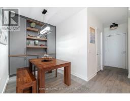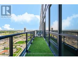 Welcome to this exceptional penthouse offering 825 sq. ft. of refined living space with stunning, unobstructed views. This 2-bedroom plus den residence is thoughtfully designed with a modern, open-concept layout that maximizes both space and natural light. The contemporary kitchen features elegant quartz countertops, stainless steel appliances, and sleek modern cabinetry, seamlessly flowing into the living and dining areas. Enjoy walk-outs to a spacious private terrace from both the living room and the primary bedroom-ideal for relaxing or entertaining. This bright and airy home showcases 9-foot smooth ceilings, wide-plank laminate flooring throughout, and porcelain tile flooring in the bathroom. Additional conveniences include ensuite laundry and two dedicated parking spaces. Perfectly located just steps from Erin Mills Town Centre, with quick access to Highways 403 & 401, top-rated schools, Credit Valley Hospital, parks, and everyday amenities. A rare penthouse opportunity combining comfort, style, and convenience-not to be missed. (id:47351)