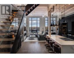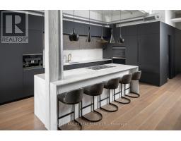A one-of-one masterpiece in Toronto's legendary Candy Factory Lofts, where a top-to-bottom custom renovation meets a spectacular private terrace and unmatched attention to detail. This rare two-storey penthouse is a true showpiece, complete with two parking stalls and a design that perfectly balances industrial soul with refined modern living. Every inch of this home has been meticulously reimagined. The custom HVAC integration preserves the open window line, while soundproofed walls and a Lutron-controlled lighting system create an effortless, ambient flow. Select-grade wide-plank white oak floors, low-iron Starfire glass railings, and a one-piece honed marble island set the tone for the Italian-crafted kitchen and open living space. The kitchen blends form and performance with Wolf double ovens (including steam), a rare in-unit gas grill with downdraft, Sub-Zero refrigeration and wine column, Miele coffee system, and concealed bar and pantry storage. Upstairs, dual bi-fold glass doors (craned in) open to an expansive terrace with a Wolf BBQ station, outdoor fridge, and linear fireplace, creating an entertainer's dream with unobstructed sunset and skyline views over the park. Outfitted with five Sonos zones, three Samsung Smart TVs (including one outdoors), dual Nest thermostats, and a professionally managed Lutron system, every feature is deliberate, connected, and elevated. Both bathrooms feature Toto fixtures and Kohler upgrades, and the home includes weekly cleaning, monthly organization, and on-site car detailing, with annual patio care and storage included. An irreplaceable residence that defines what true loft luxury can be. PH 12 at The Candy Factory is a singular home for those who value design, craftsmanship, and the rarest of outdoor spaces. (id:47351)