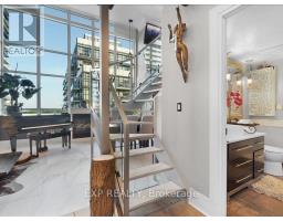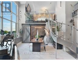LIVE Loft Life! If you want Bold, Bright & Unique, then welcome to this really offered fully transform NYC-Style Hard Loft perched on the penthouse level of MYSTIC POINTE in Mimico. Formally the McGinness Distillery, this 2-story Penthouse w/ 17ft ceilings showpiece blends Industrial Charm w Modern Luxury offering over +1200SF of brilliantly redesigned floor plan living space. South facing Floor-Ceiling windows, & one of the only handful of Lake view units in the building. The Sun drenched space was crafted to Impress & Entertain. Professionally reimagined by an Interior Designer, it features 3 Spacious Bedrooms, 2 Spa inspired Bathrooms, Sleek Open-Riser Stairs, Dramatic Glass Railing, exposed columns and hidden Wall Lighting accents that elevate every corner. The Chefs Kitchen boast a Large eat-in-island. Newer appliances & ultramodern Ceiling lighting throughout. A massive walk-in Closet enough to support any Shoe Enthusiasts, additional large Storage, Gas Fireplace, & a Massive Ceiling Fan on Smooth 17'ceilings add to its Unique Character. Parking + Premium XL Locker both conveniently located on the same floor as unit!!! No Need to Use Elevator After A long Shopping Day! Perfect for a Style-Forward Couple or Remote Working Professionals who Value & Crave Ample Space, Light, & Bold Design Statements with Luxury in Mind. This is your Ultra Rare Opportunity to Own a True NYC Style HARD Loft with a Toronto Address. Seller is RREA. Fully Remodelled in 2025, including 1yr Furnace & AC. Seller open to VTB options with low rates. (id:47351)