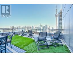 Downtown Toronto Luxury Penthouse furnished with two parking and Spectacular Skyline Terrace. Experience cinematic city living in this two-storey penthouse with an extraordinary entertaining terrace offering breathtaking sunset views over Lake Ontario-a true movie-set skyline backdrop. Completely reimagined with Calcutta quartz counters, glass staircase, full-size appliances, and two primary ensuites featuring spa-style rainfall showers, this residence defines modern elegance. Enjoy two additional balconies for morning coffee and a penthouse-level laundry suite with ambient ceiling lighting, automated blinds, and polished stainless steel finishes. The building's private high-rise lobby, express elevators for upper floors, and heated saltwater pool with 10-person hot tub create a five-star experience, complemented by 24-hour security and contemporary designer hallways. A Sobeys grocery store at street level, Canoe Landing School and Recreation Centre across the street, and swift access to Spadina streetcar, Union Station, and the UP Express make city life effortless. With two side-by-side parking spots, a locker, and an expansive private terrace rarely found downtown, this penthouse offers unmatched luxury and convenience at Toronto's vibrant core. View virtual tour for more pictures of this stunning penthouse. Click VIRTUAL TOUR for more photos. (id:47351)