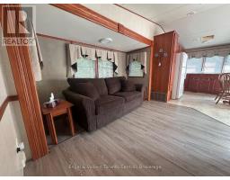 Get ready for your 2026 summer! This 1-bedroom 2006 General Coach 38 1BFK park model, a very roomy and bright unit, is the perfect place to spend next season. The extra-wide kitchen with a vaulted-ceiling eating area tip-out offers lots of cabinets for all your storage needs and a roomy place to seat your dinner guests. The living room offers a built-in entertainment area with a TV and a pull-out couch for your guest to comfortably stay. The bedroom also has a wall-to-wall closet with built-in shelves. Sit under the hard awning and listen to the nature that surrounds you on this great lot located on a dead-end street, or enjoy a campfire in the evenings with friends. This unit is located in the SEASONAL section of Spring Valley Resort and opens the second weekend of May and closes the third weekend of October. The resort offers 2 pools (1 adult and 1 family), mini-putt, a horseshoe club, a beach area, a lake to swim in, a rec center, and rec programs for both children and adults. Call to book your viewing today! The fees for the 2026 season are $4,595.00. Note: Includes everything but your propane, hydro, and Internet if you choose to install it. There are no additional fees for water, property, taxes, visitors to the resort, etc. (id:47351)