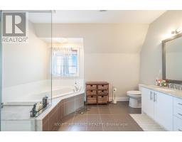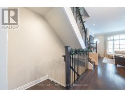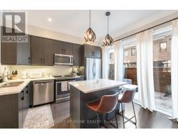 Welcome to this Trafalgar Ridge Townhome by Dunpar, architecturally modelled on the English Georgian Manors, offering 3 bedrooms plus den/office and almost 2,000 sqft of living space! The main level features a fireplace, 9'6'' smooth ceilings with crown mouldings and an open layout with rich dark engineered hardwood flooring in the living room and separate dining room. The beautifully upgraded eat-in kitchen with sleek stone countertops, stainless steel appliances, pendant and pot lights, centre island with breakfast bar, pantry, backsplash, and walk-out to private deck! The 2nd level boasts convenient bedroom-level laundry, a 4pc main bathroom and 2 large bedrooms. The 3rd floor/loft primary bedroom features soaring vaulted ceilings a privacy balcony, a large walk-in closet with dressing area and a 5pc ensuite bathroom with marble countertops, soaker tub and frameless glass shower with marble bench. The ground level offers a den/office, 2pc bathroom, heated flooring in the foyer and convenient inside access from the attached garage with parking for 2 cars! Energy-efficient windows throughout. Monthly POTL fee of $170 includes landscaping, snow & garbage removal, association/property management fee and common elements. Walk to great schools, parks, trails and restaurants. Easy access to transit, highways QEW, 407 and 403, OTMH, shopping and plenty of great amenities! You will LOVE this home! (id:47351)