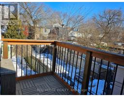 Beautiful lofty apartment on the upper floor of a duplex in a charming residential area! Steps away from Leslieville and Beaches neighbourhoods. Kitchen features custom pull out pot drawers, stone counters and a combined washer/dryer unit. Bright, airy living room has a cathedral ceiling and a skylight providing a luxurious aesthetic and filling the room with natural light. Four-piece bathroom has heated floors. Large bedroom with double closet opens out to the multi-purpose den with access to the South-East facing private deck. Street parking is available by city permit. Streetcar is across the street. Enjoy city living within a ten-minute walk from Woodbine Beach. This is an ideal living space for a couple seeking a condo alternative or a single professional with a work-from- home or flex office attendance career. (id:47351)